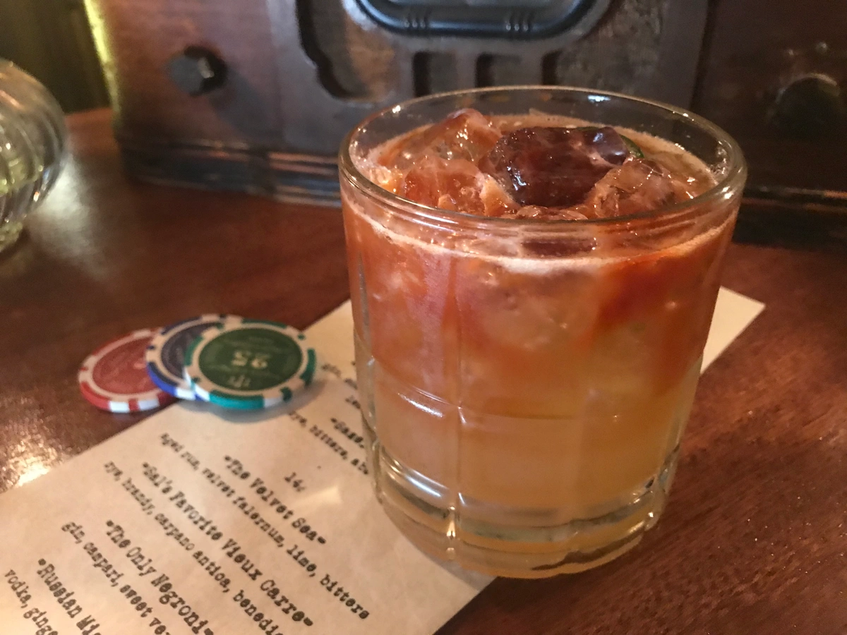 The name comes from one of the major ingredients, velvet falernum (a very sweet liquor used in a lot of rum cocktails). Traditionally when you think of what people drank at sea, they drank rum. So the idea behind "The Velvet Sea" is that it incorporates those two things where you get a sense of the ingredients (rum) and a hint to its tropical flavors.