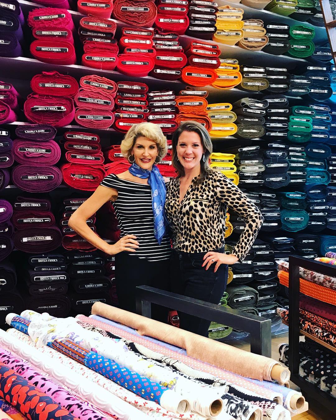 Last week we met at Britex, her go-to place for anything fabric. Started in 1952, this San Francisco landmark is where designers from all over the world go to shop the latest and greatest fabrics. Karen and I instantly fell in love with a lavender silk chiffon that's covered with golden shimmery leaf prints.