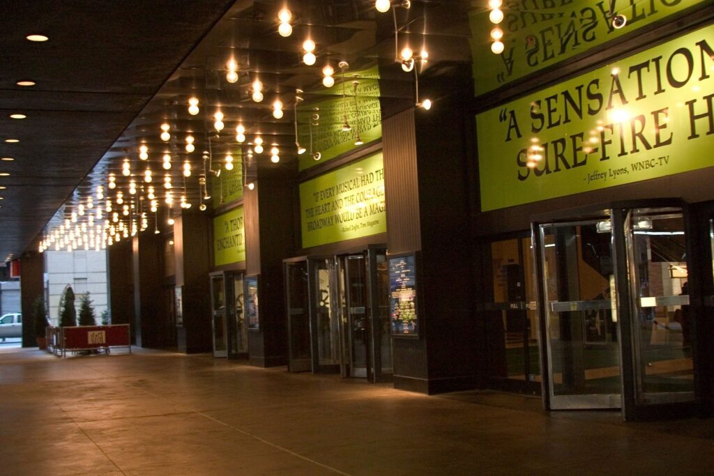 Minskoff Theatre - You may recognize the iconic outdoor theatre entrance with black columns and yellow glowing lights. The Minskoff Theatre hosted the original West Side Story, Fiddler on the Roof, and The Lion King. Today, the theatre still hosts many Broadway classics.